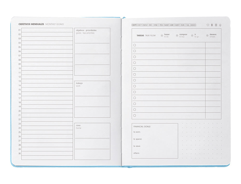 - Contenido Bilingüe: Diseñada para incluir información en dos idiomas, facilitando la planificación en entornos multiculturales o para estudiantes que estudian un segundo idioma.