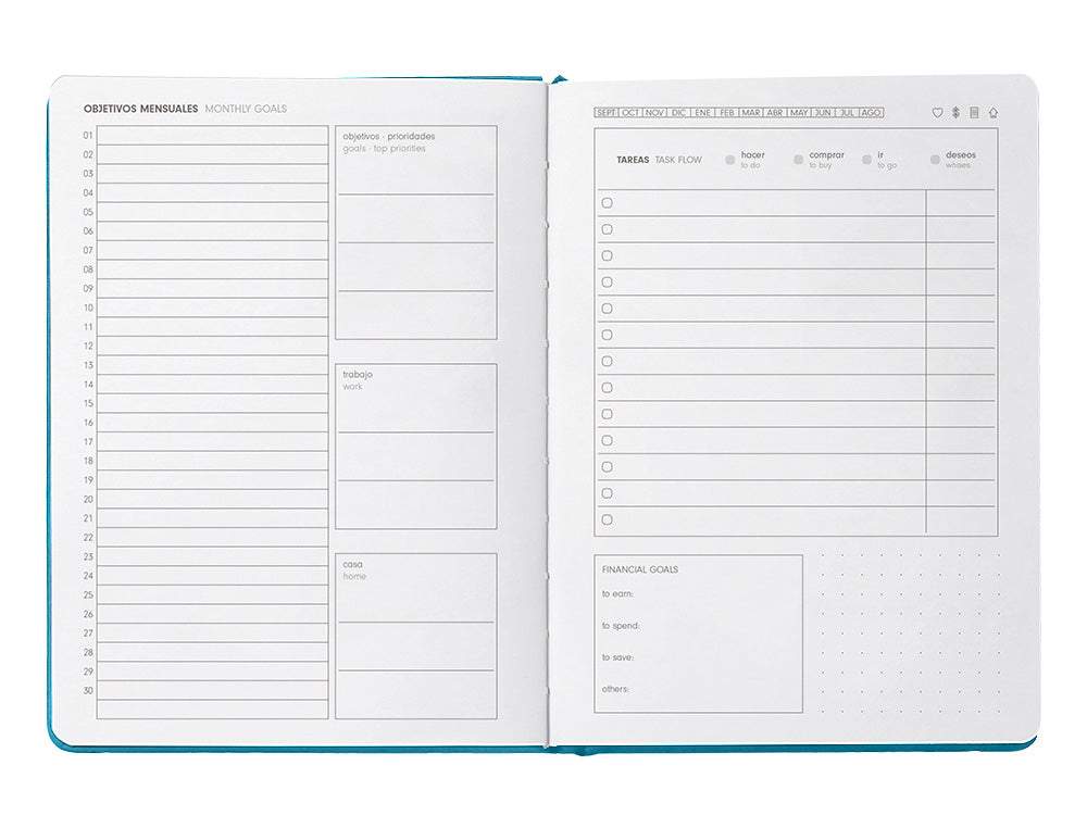 - Extras: Incluye una banda elástica a juego para cerrar la agenda, garantizando que tus notas estén siempre seguras.