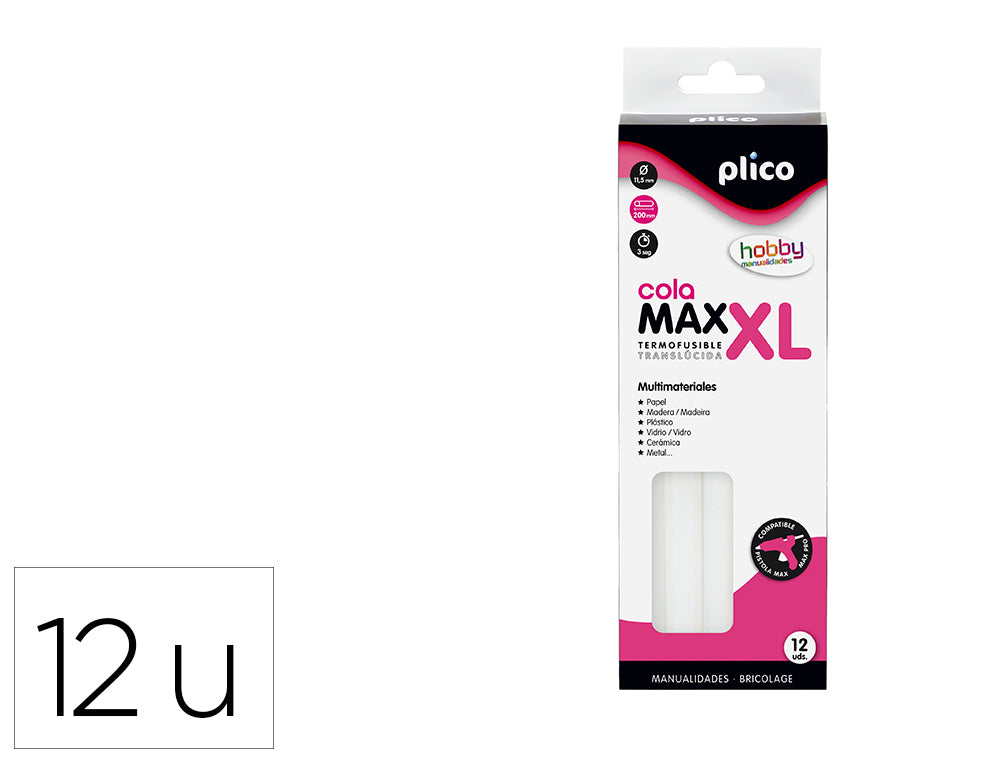 Barra termofusible plico cola max xl baja temperatura 11,5 mm de diametro x 200 mm de alto blister de 12 unidades