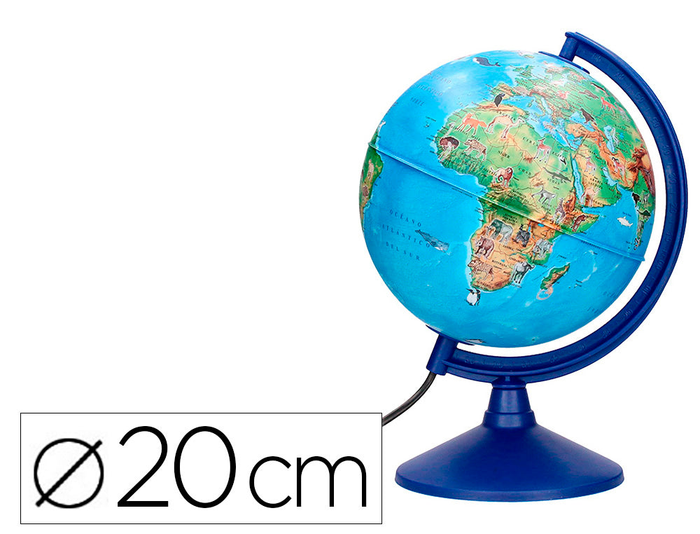 Globo terraqueo liderpapel con luz fisico y politico con animales diametro 20 cm