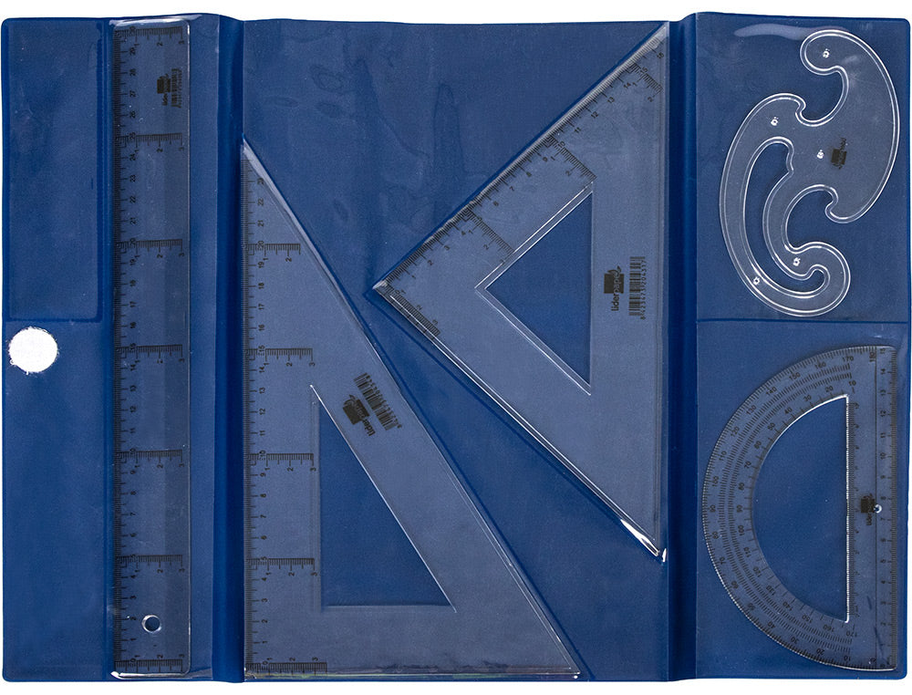 Juego escuadra y cartabon 25cm regla 30cm semicirculo 15cm y plantilla de curvas liderpapelen petaca opaca color verde