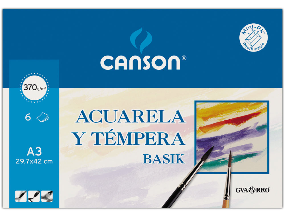 Papel acuarela basik canson din a3 370 gr pack de 6 hojas