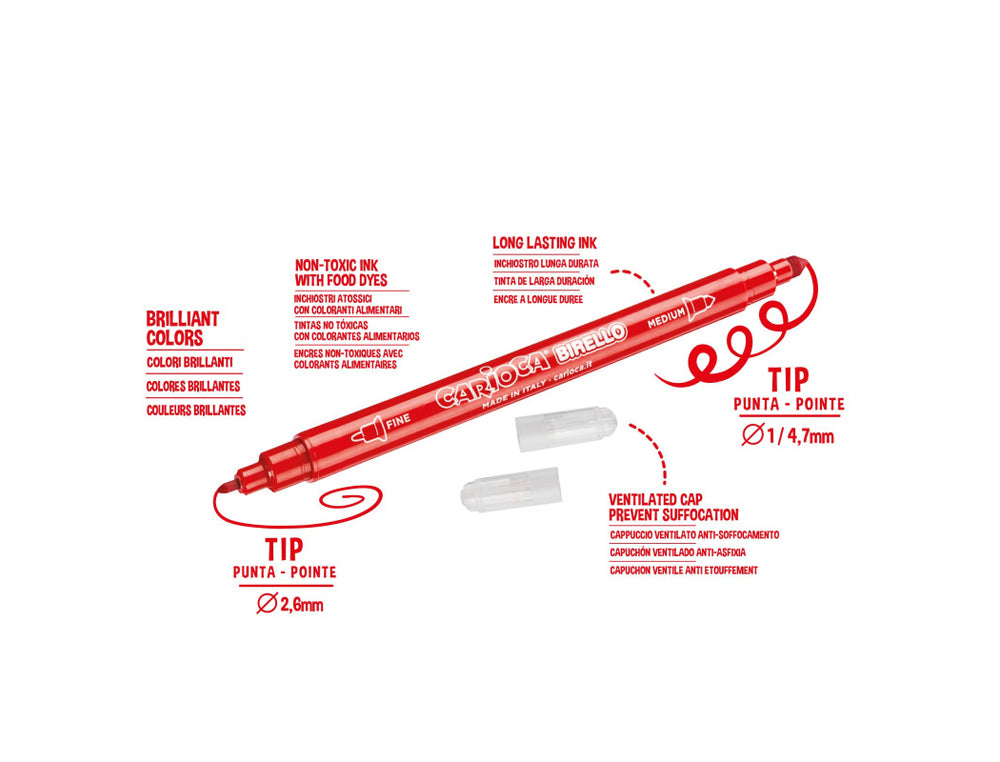Este set de rotuladores es una excelente elección para estudiantes, artistas y aficionados al dibujo que buscan herramientas versátiles y seguras. Con el Rotulador Carioca Birello Doble Punta, la creatividad no tiene límites.