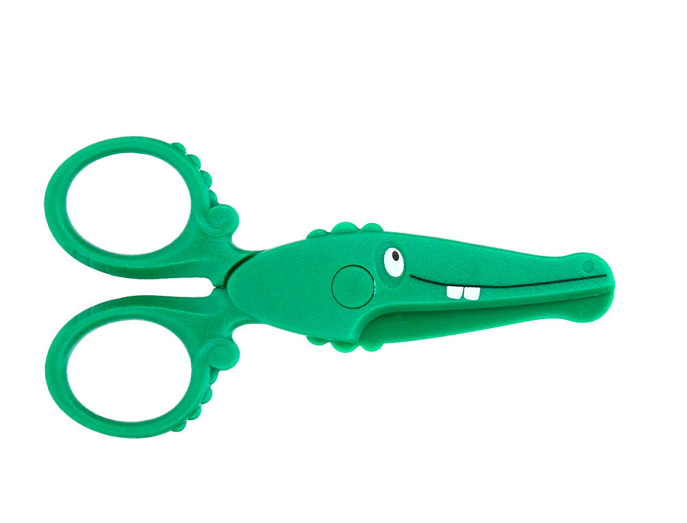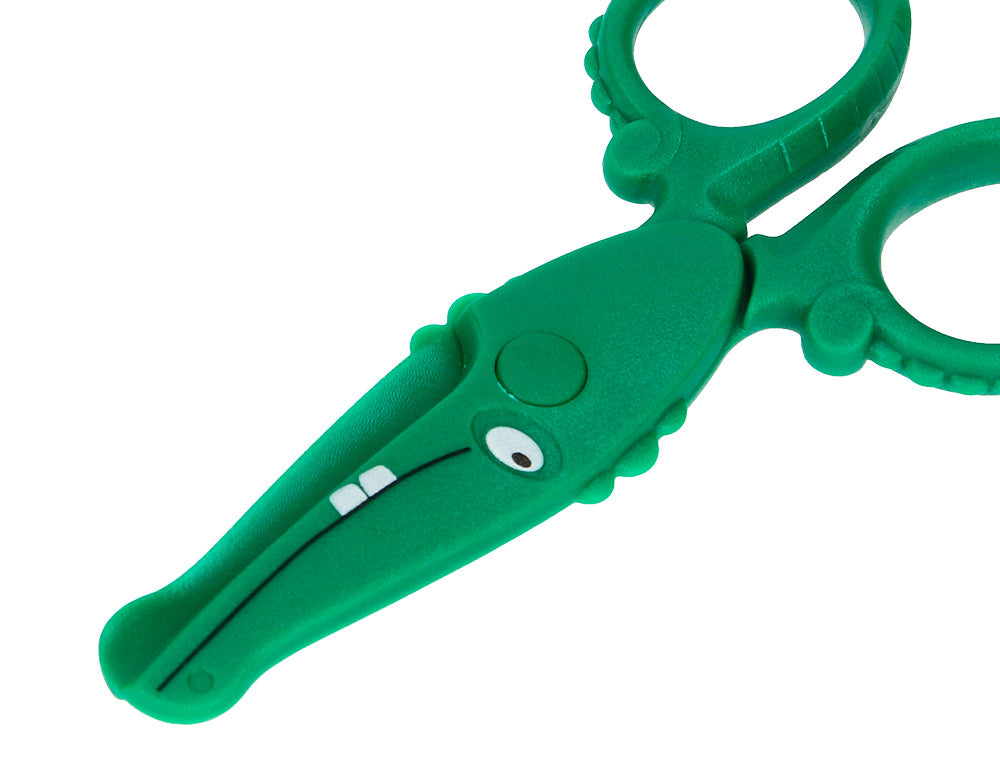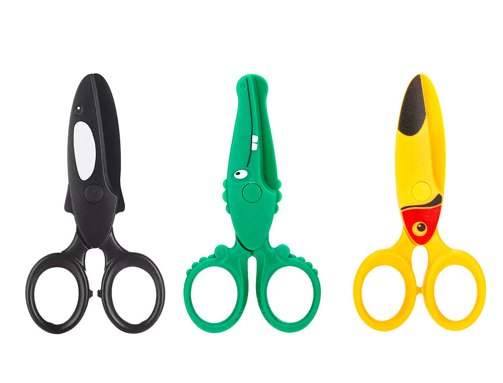 Material de las hojas: A diferencia de las tijeras de acero inoxidable, esta cuenta con cuchillas de plástico, lo que la hace segura para su uso en entornos educativos.